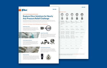 Fike Rupture Discs are designed to provide a leak-tight seal within a pipe or vessel until the internal pressure rises to a predetermined level. At that point, the disc bursts—within one or two milliseconds of an overpressure event—preventing damage to the equipment. Furthermore, Fike’s world-class manufacturing process offers superior performance, validation testing, and ongoing innovation.