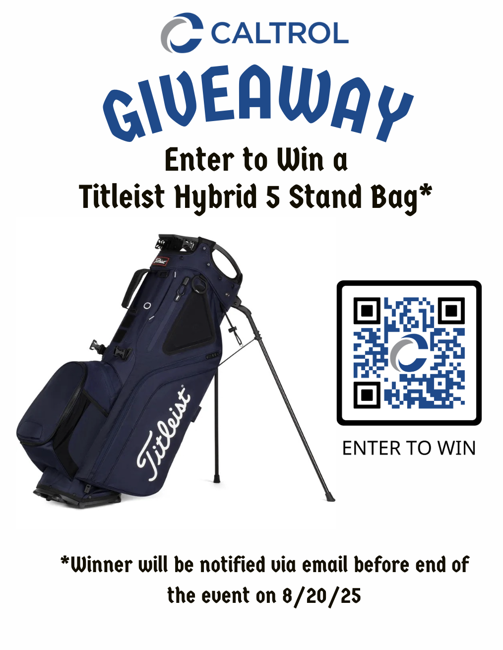 Thank you for your interest in our Titleist Hybrid 5 Stand Bag giveaway. A winner has been selected and this drawing is now closed. We look forward to seeing you at a future industry event!